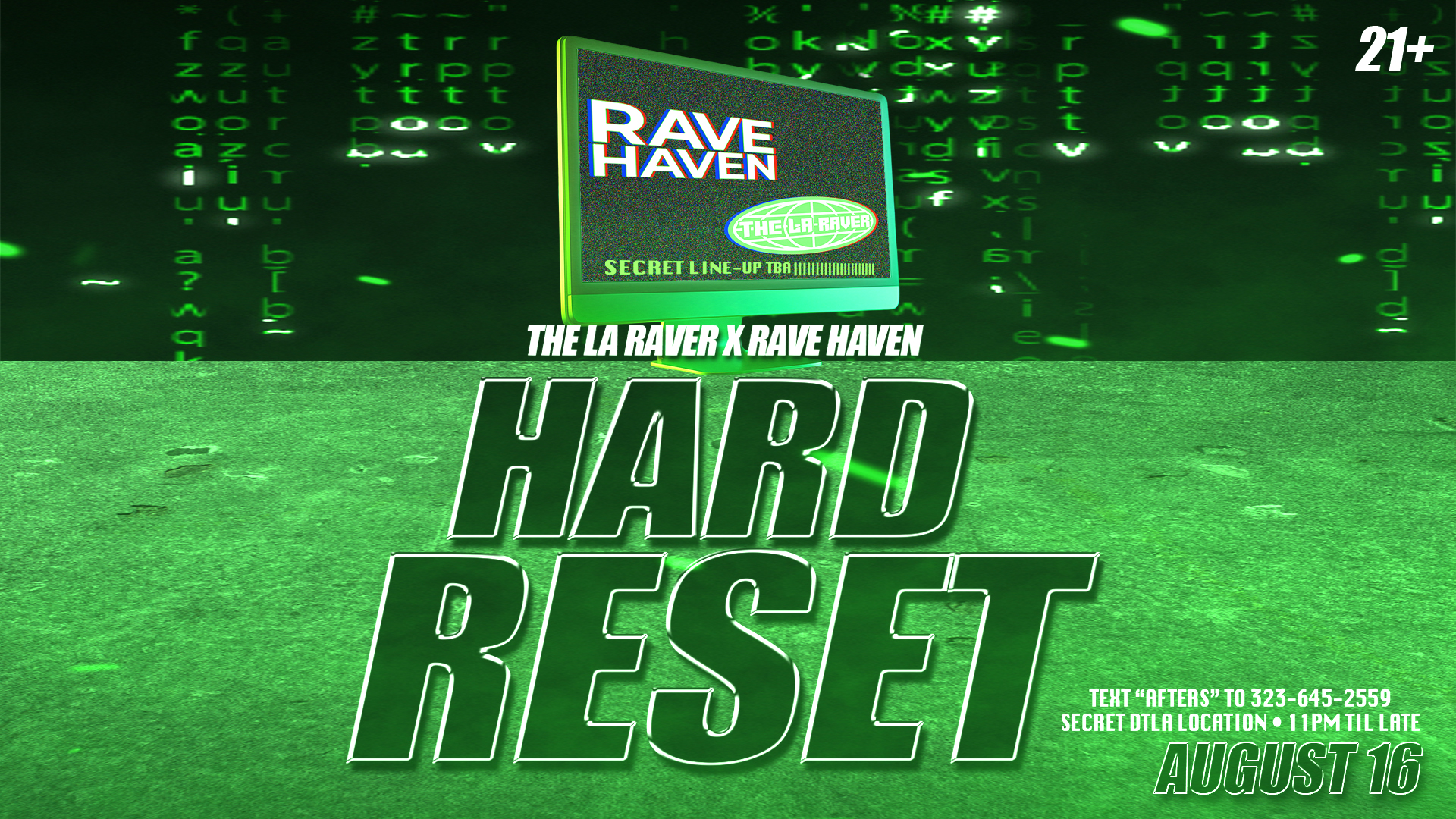 Once the show wraps, grab your crew and head about 10–15 minutes into downtown LA. The LA Raver and Rave Haven are throwing their monthly afterparty with, HARD RESET. After the chaos of Hard Summer and their sold-out HEAT WAVE Unofficial Afters, the rave fam is overdue for a proper recharge.